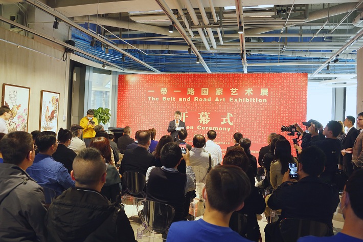 开幕式由我校国际交流处处长陈青长主持。他表示,本次展览活动旨在贯彻落实习近平总书记“一带一路”倡议精神,以美术作品为载体,展示和平合作、开放包容、互学互鉴、互利共赢为核心的丝路精神,促进“一带一路”沿线国家文化交流互鉴。同时,正值迎接建党100周年之际,为了共同推进一带一路各国、各高校、组织之间的广泛交流,增加一带一路国家艺术设计层面的密切合作,强化学校文化艺术创意学科的优势品牌。举办方在进博会6+365平台举办此次10*10一带一路国家艺术展,寓意来自10个国家10位艺术家的代表作品,为建党100周年献礼。