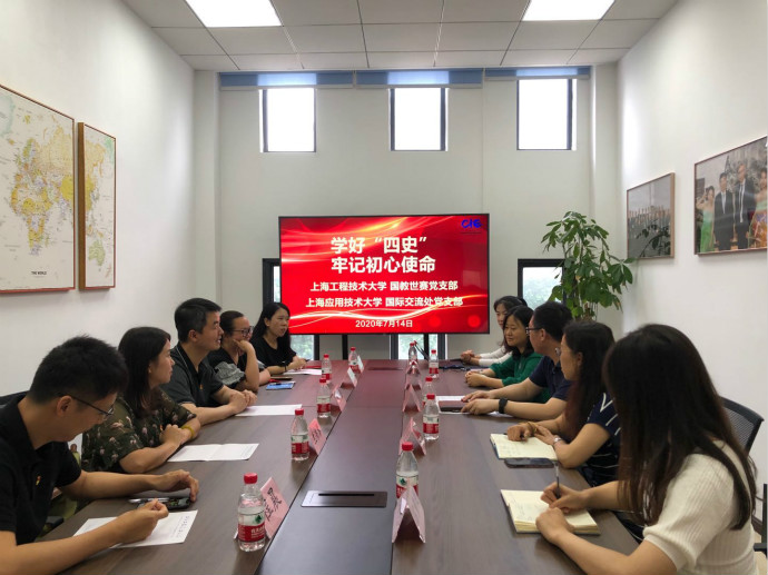 7月14日,我校国际交流处与上海工程技术大学国教世赛党支部开展主题为“学好‘四史’,牢记初心使命”的联合共建活动。上海工程技术大学国教世赛党支部书记、院长王武东及党支部成员代表,我校国际交流处党支部书记陈青长及党员代表参加会议。