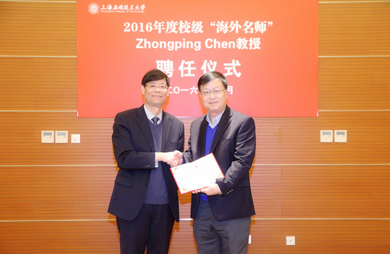12月14日,2016年度校级“海外名师”陈忠平(Zhongping Chen)教授的聘任仪式在校举行。副校长叶银忠出席仪式并为陈忠平教授颁发聘书。理学院和国际交流处相关负责人参加仪式。