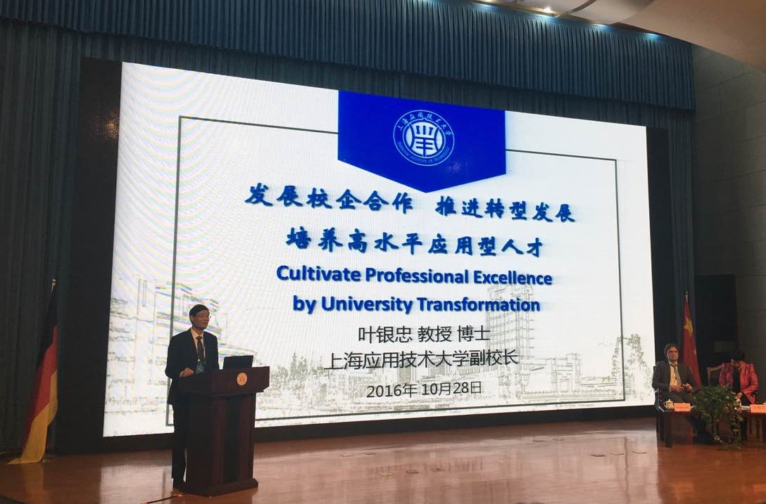 10月27日至29日,第九届中德应用型高等教育研讨会在合肥学院举行。来自中德两国教育部门、应用型高校的三百多位代表参加会议。我校副校长叶银忠应邀参加,并作大会主题报告。政策与法规研究室、教务处、研究生部及国际交流处负责人随同赴会。