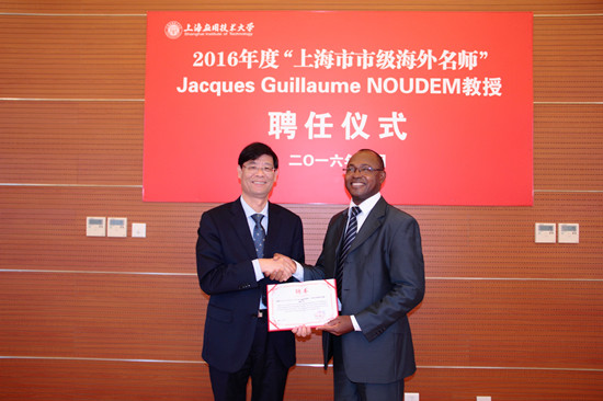 10月24日,副校长叶银忠出席学校“海外名师”聘任仪式, 聘请法国卡昂大学雅克·纪尧姆·诺登(Jacques Guillaume NOUDEM)教授为我校2016年上海市市级“海外名师”。叶银忠为雅克·纪尧姆·诺登教授颁发聘书,希望他为学校带来最新学术成果、领先科研技术,先进教育理念和国际学术视野,并祝愿他在学校工作顺利、生活愉快。雅克·纪尧姆·诺登感谢学校对他的邀请和信任,表示将尽全力,积极投身工作,为学校的学科建设与发展贡献力量。聘期内,雅克·纪尧姆·诺登将在材料科学与工程学院开展一系列的授课、讲座、科研指导活动。