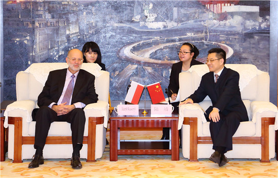 2015年11月13日上午,波兰格但斯克工业大学校长、波兰科学院院士HenrykKrawczyk率团访问我校,该校合作与创新副校长JacekMakinia、经济与管理学院院长JulitaWasilczuk、化学学院副院长WojciechChrzanowski、电气与控制工程学院项目负责人AgnieszkaKaczmarek-Kacprzak、国际与公共事务部副主任Magdalena Popowska等随同来访。校长陆靖会见了来访一行。