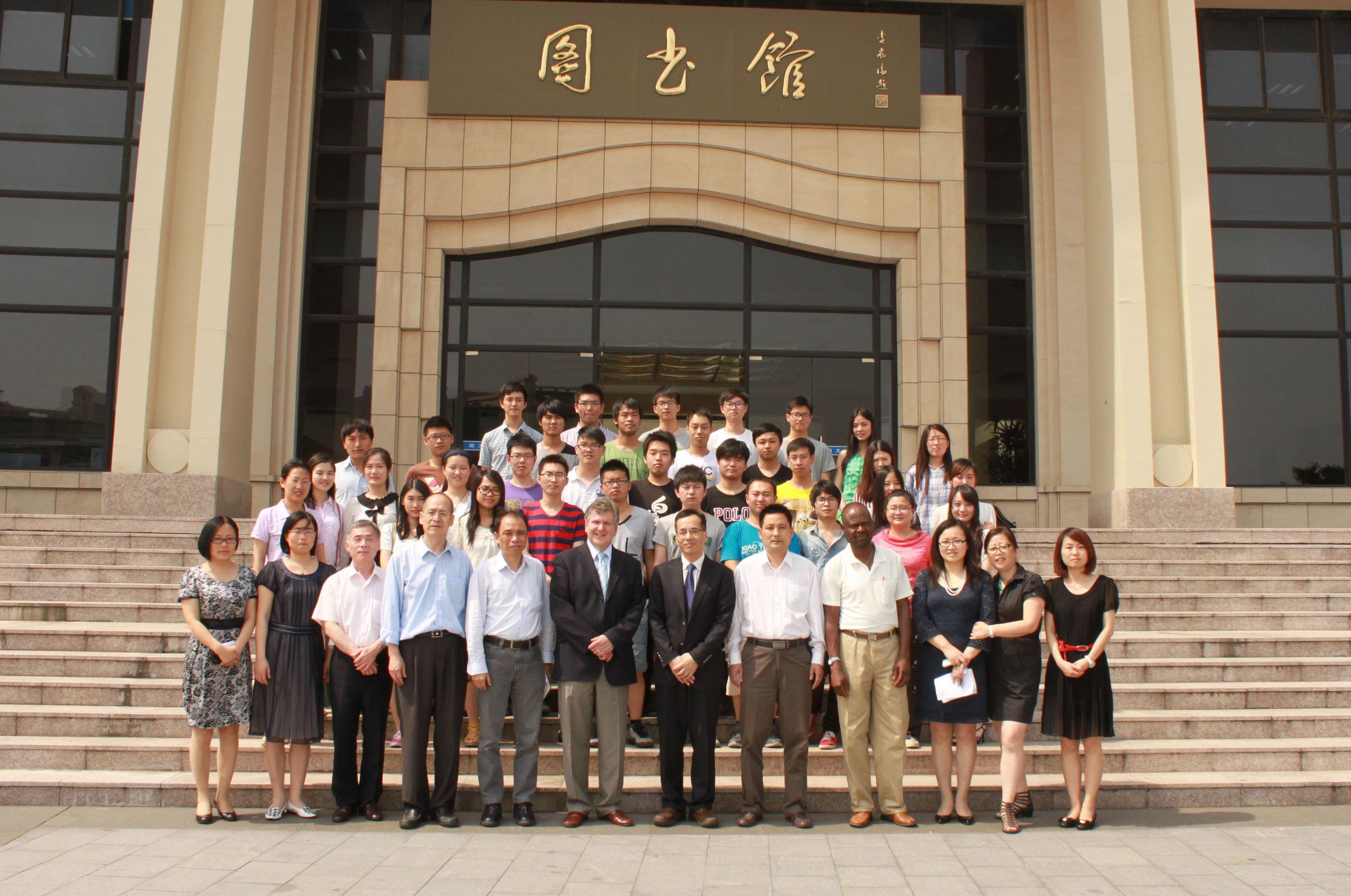 2014年5月29日,2014届上海应用技术学院中美合作办学项目课程结业证书颁发仪式在奉贤校区图书馆B102举行。上海应用技术学院副校长陈东辉、美国中央密歇根大学副校长Roger Rehm、国际交流处、电气学院、机械学院等相关领导以及合作项目教师出席了仪式。