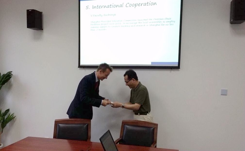 6月26日,德国特里尔应用科学大学国际商务系教授Tobias Richter博士在上海大学国际交流处处长助理毛雁冰博士的陪同下访问我校,副校长陈东辉会见Tobias Richter博士一行,国际交流处及经济与管理工程学院相关人员参与会谈。