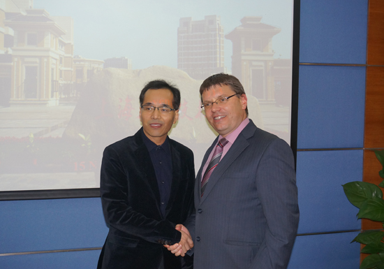 爱尔兰理工学院一行表示希望两校今后能在如计算机等更多学科领域中开展师生交流,Ruaidhrí l Neavyn校长为在两校组织的“2013SIT-WIT国际联合建筑设计竞赛”中获奖的城建学院建筑系学生汪剑、傅翀、张中一、王玉成等颁发获奖证书。