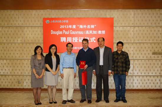 10月21日,加拿大多伦多大学Douglas Paul Gauvreau(高风如)博士再度受聘为我校2013学年度“海外名师”。副校长陈东辉为高风如颁发聘任证书,城市建设与安全工程学院、国际交流处相关负责人参加聘任仪式。