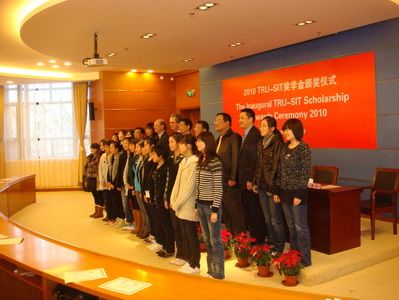 2010年11月18日,我校举行“TRU-SIT中加合作市场营销奖学金”颁奖典礼,TRU大学 Roger Barnsley校长、Alan Shaver校长与我校领导叶银忠出席典礼。颁奖会上,中外校长都作了热情洋溢的讲话,2007级中加市场营销专业袁洁云同学代表获奖学生作了发言。经管学院中加市场营销专业(2007级至2009级)共有18名优秀学生分获一、二、三等奖。