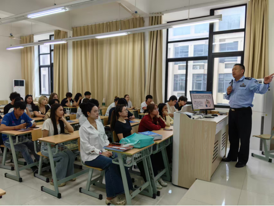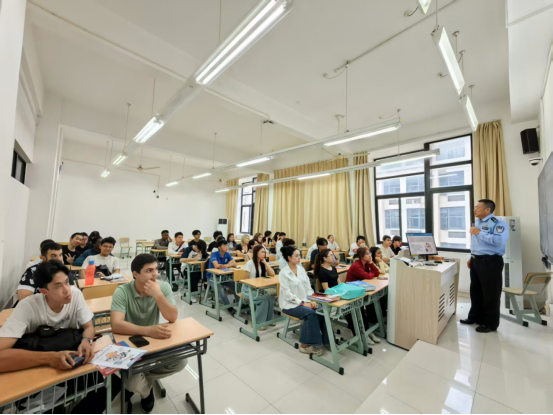 9月29日,国际交流处在奉贤校区为国际学生们举办了在华留学安全知识讲座。主讲人为奉贤海湾高校派出所的张警官。他向国际学生们普及了反诈、禁毒、交通安全等知识,通过案件实例、法条讲解告诉国际学生们要时刻绷紧安全的弦,顺利度过在中国的留学时光。