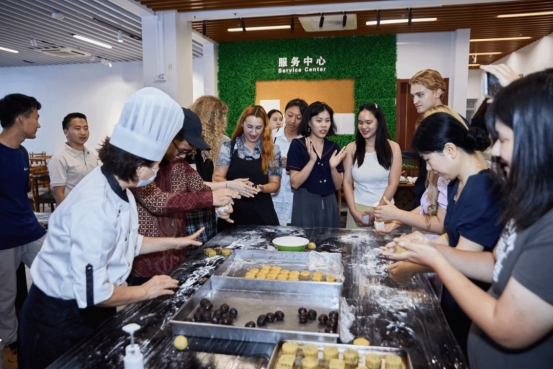 现场热闹温馨的氛围传递着传统文化的博大精深:国际学生们手握刻刀,在瓷盘上细细雕琢纹路,沉浸式感受手工制瓷“千年传承”的匠心;随后又揉面、包馅、压模,亲手制作象征团圆的中秋月饼。从指尖的细腻触感,到成品的香气与纹路,大家在实践中读懂非遗技艺的文化内涵,更深刻理解了中秋阖家团圆的节庆寓意。