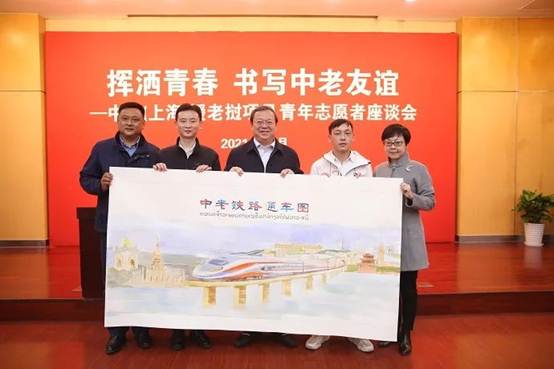 会上,上海市人民对外友好协会会长陈靖、副会长景莹、共青团上海市委书记上官剑、青年志愿者代表与我校老挝留学生杨烨共绘“中老铁路通车图”。在绘制过程中,老挝留学生们静静倾听着中老友谊的歌曲,歌声中火车鸣笛与欢呼此起彼伏……阳光洒进窗台,暖意久久回荡在人们心间。